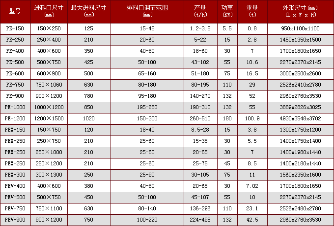 我公司經過多年研究生產以及國內外的成功經驗,所生產的顎式破碎機(顎破,鄂式破碎機)具有高效,節能的特點。大中小型鄂破機現已成為我公司的主打產品,并且在技術方面已達到了國內外的水平。顎破機在礦山、建材、基建等部門主要用作粗碎機和中碎機。按照進料口寬度大小來分為大、中、小型三種,進料口寬度大于600MM的為大型機器,進料口寬度在300-600MM的為中型機,進料口寬度小于300MM的為小型機。PE系列用于粗破,PEX系列用于中、細破。顎式破碎機(鍔式破石機)結構簡單,工作可靠,使用維修方便。